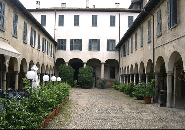 Nel cortile detto del Broletto, il fregio che corre sopra le colonne del porticato, ospita ancora degli usurati affreschi in cui, entro tondi, si possono intuire busti di uomini, verosimilmente legati alla realtà comunale.Dovunque si guardi, la meraviglia è dietro l’angolo. Letteralmente.