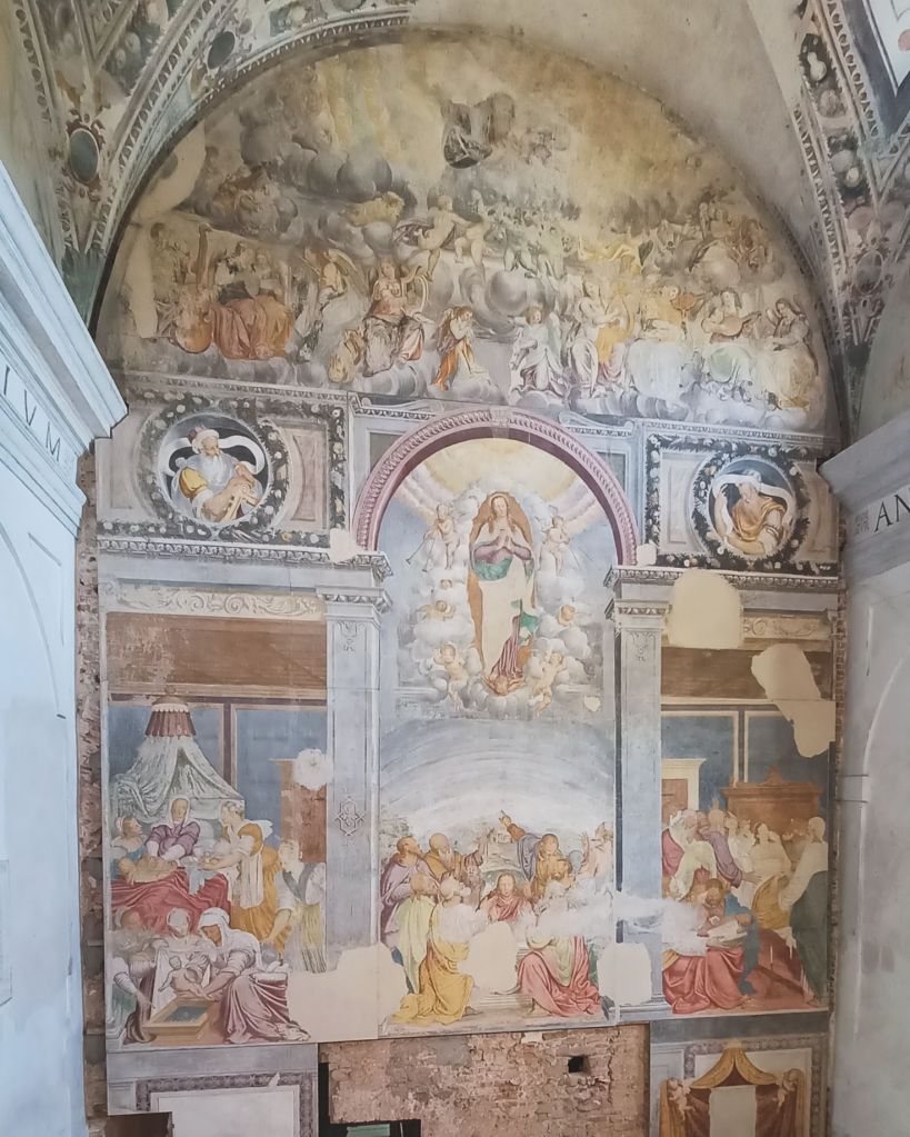 Esse decretavano che ogni monaca velata dovesse avere una cella: il chiostro, eretto nel Quattrocento, venne pertanto sopraelevato di un piano. Sono visibili pregiate opere del periodo come il meraviglioso e grandioso affresco del Luoni e le pitture riservate alle stanze delle monache più illustri, che qui hanno dimorato in modo più o meno volontario.