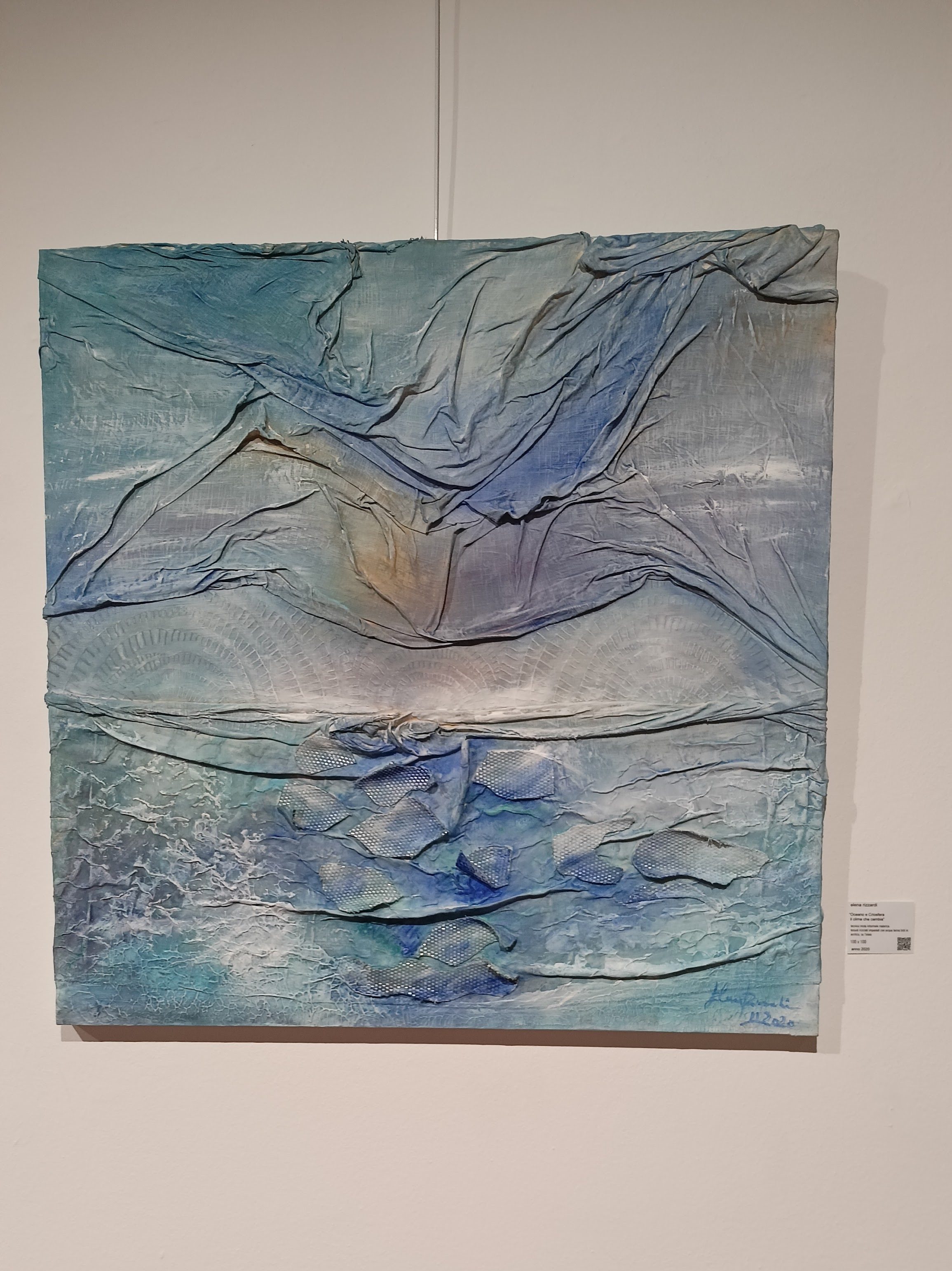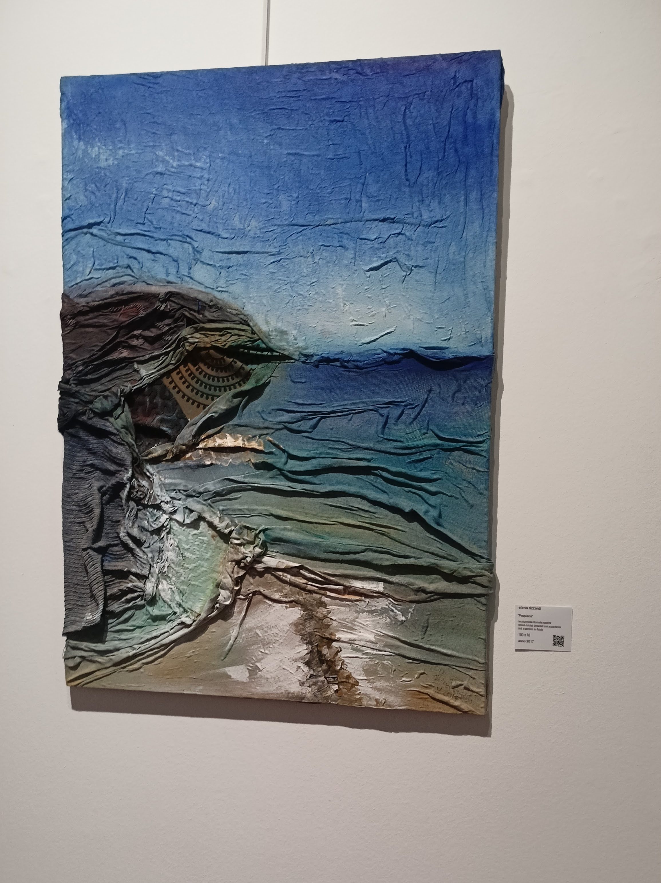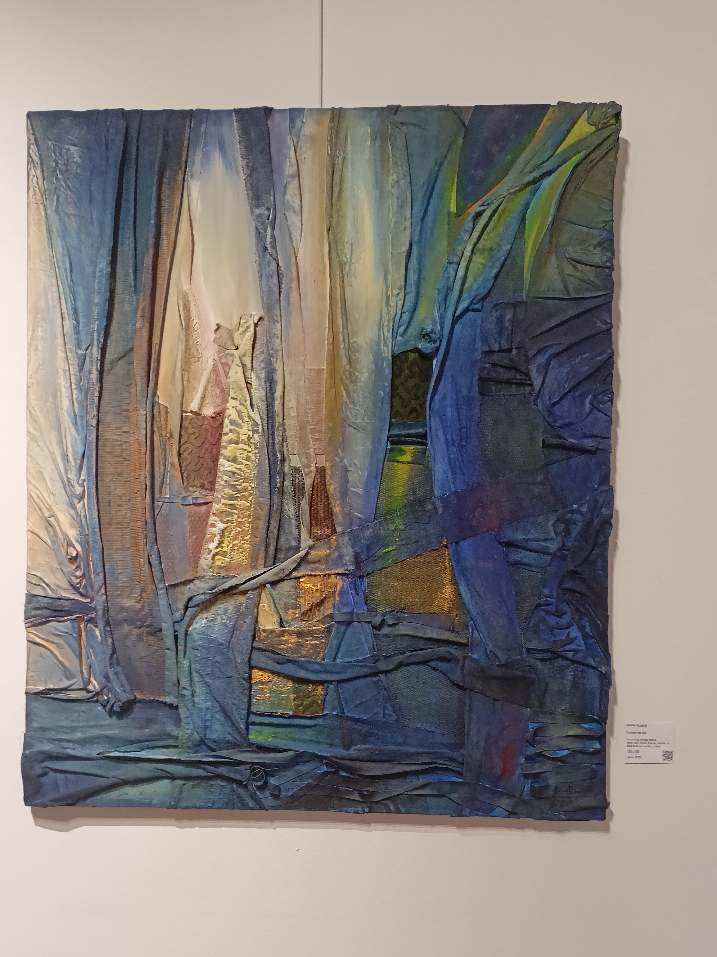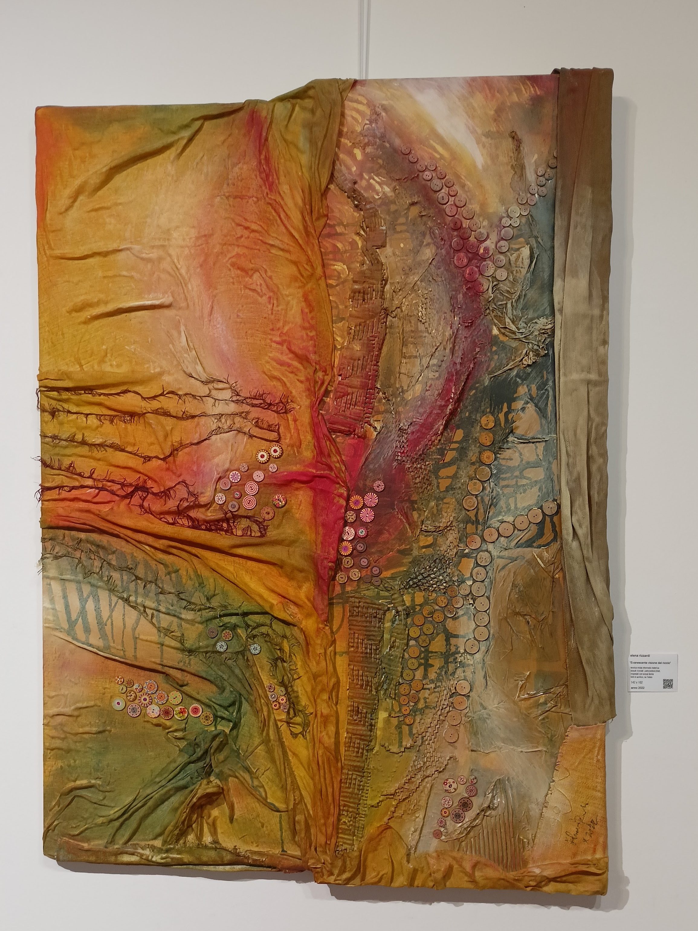 Elena Rizzardi possiede un vero e proprio “DNA: fiber”. “Da vent’anni l’Artista coltiva un prezioso archivio di tessuti artigianali di recupero – illimitato vivaio materico di fili, lamine, strati, fiocchi, intrecci sui quali costruire ulteriore Meraviglia.