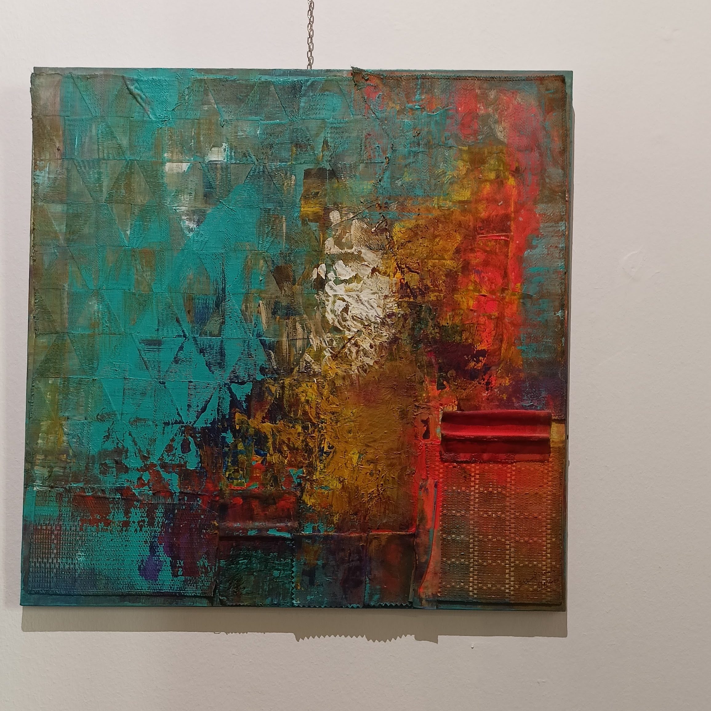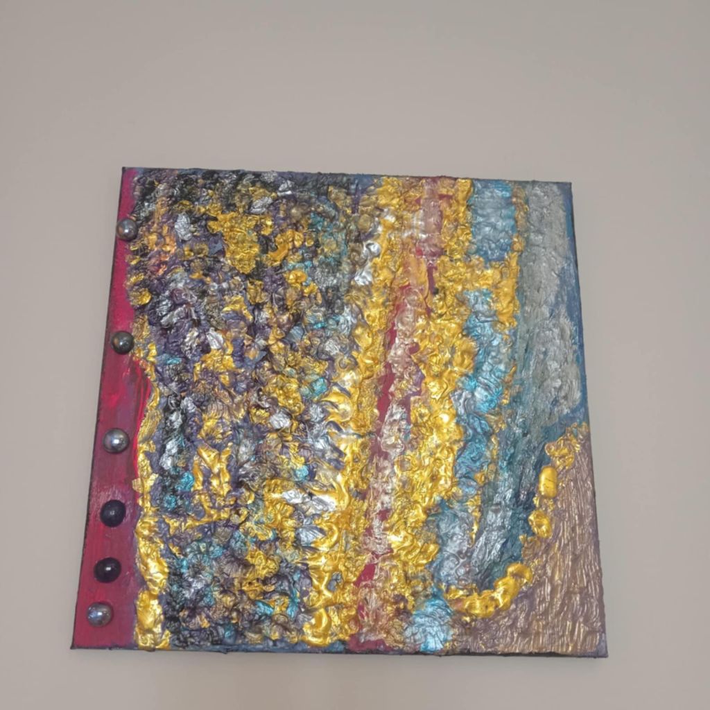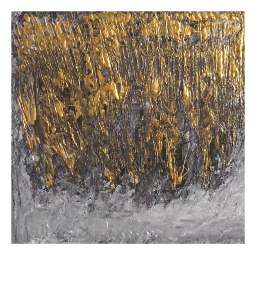 Strappati al consumismo delle eccedenze e delle discariche, gli avanzi dischiudono la possibilità di una seconda Creazione, che la Rizzardi produce con sapienti tagli e gessature, riflessi e sfumature acriliche e persino interventi in tufting. E’ la nascita di una Seconda Bellezza, sapiente – perchè ci spinge fermarci e vedere oltre, a riscrivere la trama già scritta, ma anche salvatrice – perchè capace di restituire in ogni frammento d’opera infiniti microcosmi nei quali perderci, e ritrovarci consapevoli del tempo delle cose, del loro valore, di ogni nostro gesto che incide sul destino del pianeta”.