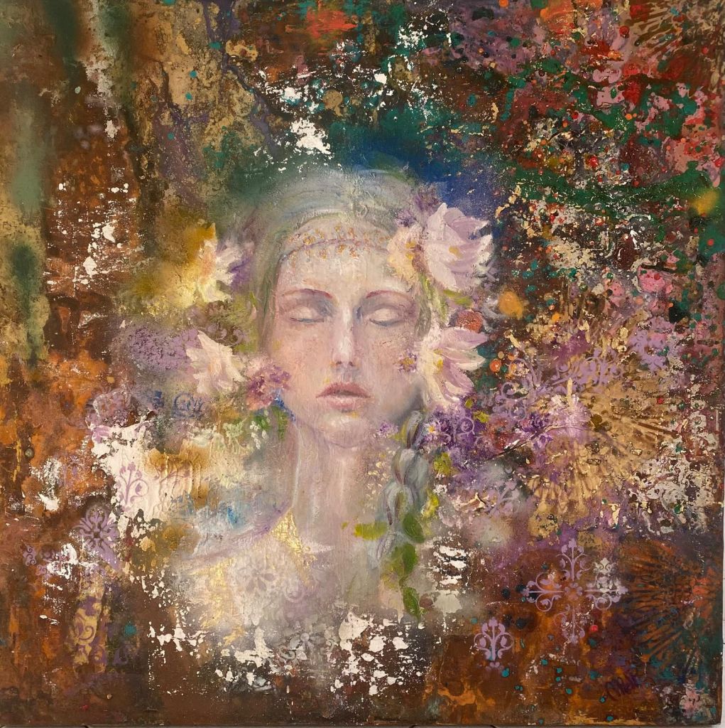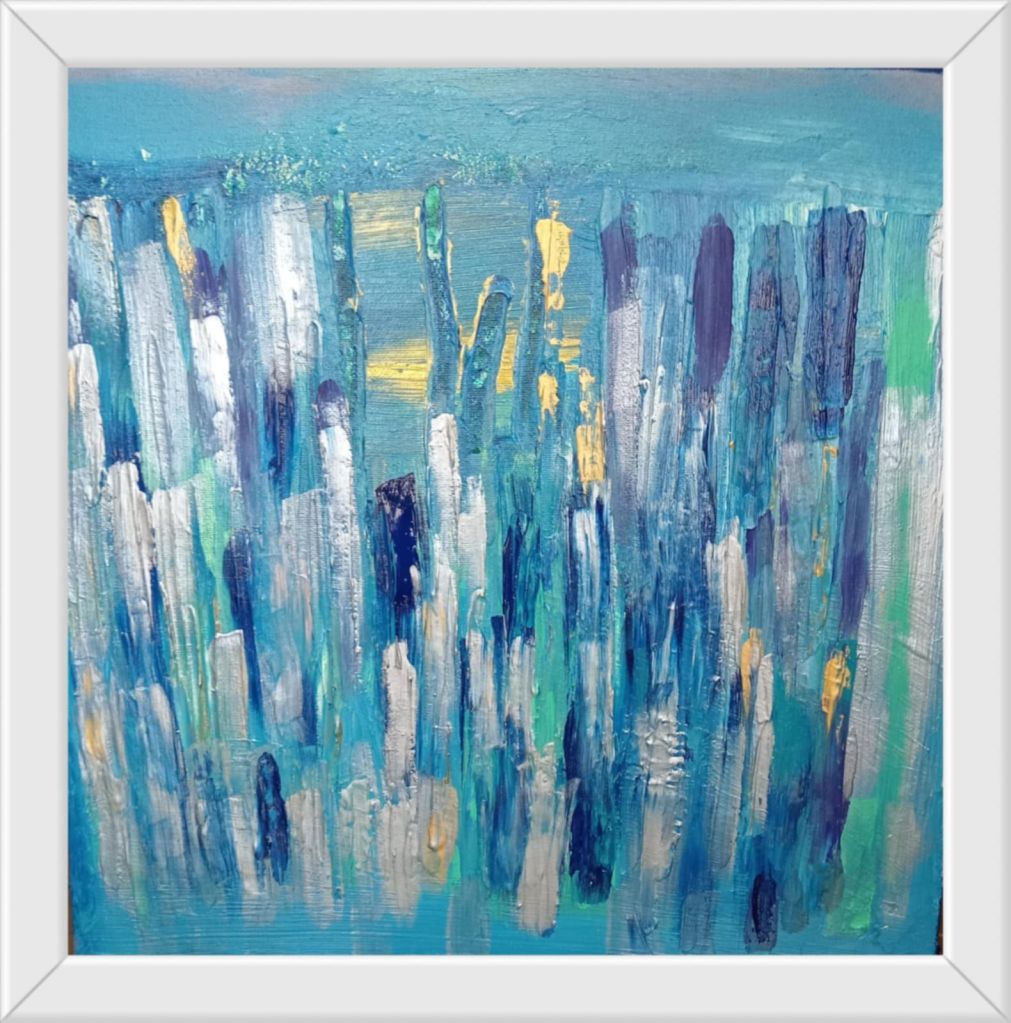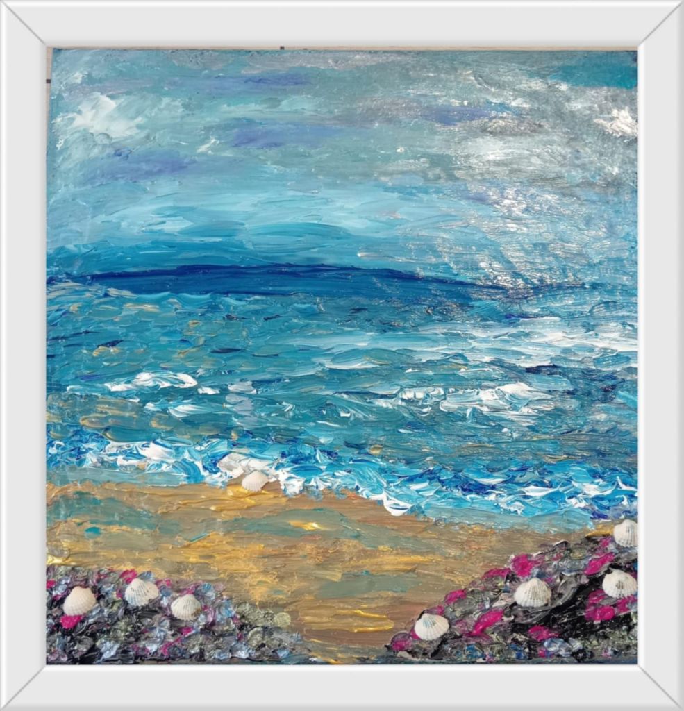 Strappati al consumismo delle eccedenze e delle discariche, gli avanzi dischiudono la possibilità di una seconda Creazione, che la Rizzardi produce con sapienti tagli e gessature, riflessi e sfumature acriliche e persino interventi in tufting. E’ la nascita di una Seconda Bellezza, sapiente – perchè ci spinge fermarci e vedere oltre, a riscrivere la trama già scritta, ma anche salvatrice – perchè capace di restituire in ogni frammento d’opera infiniti microcosmi nei quali perderci, e ritrovarci consapevoli del tempo delle cose, del loro valore, di ogni nostro gesto che incide sul destino del pianeta”.
