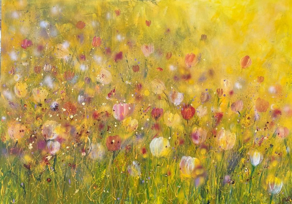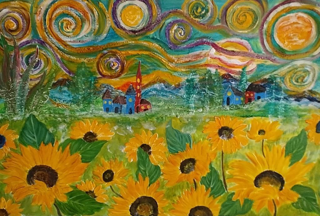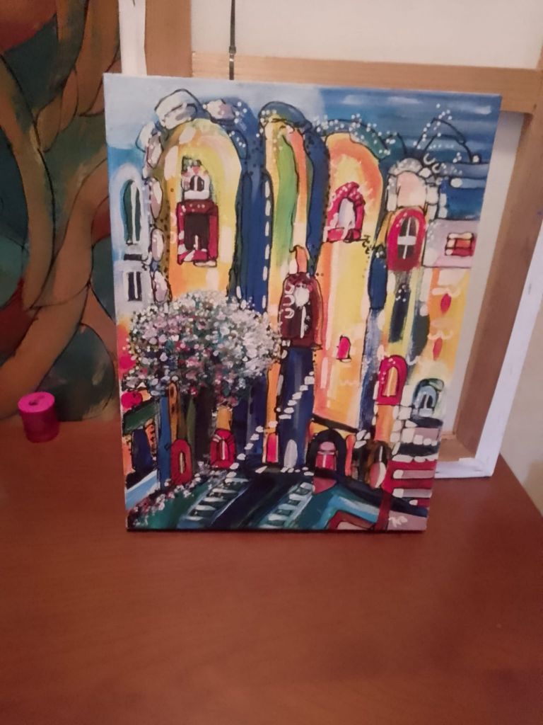 La tecnica di questa straordinaria artista è quella di produrre opere con tessuti, generalmente provenienti dalle aziende tessili della zona, utilizzando tagli e gessature, colorandoli e rendendo meraviglia viva e vibrante. Da questa idea nascono quadri che possono rappresentare paesaggi ma anche motivi astratti in cui ogni spettatore vede riflessa una parte della sua anima.