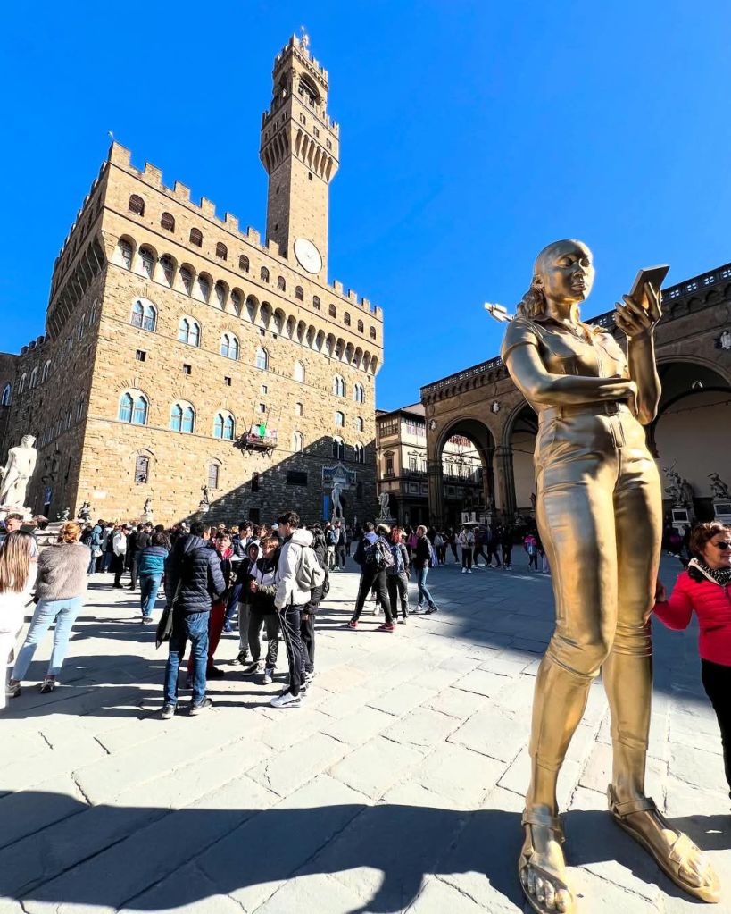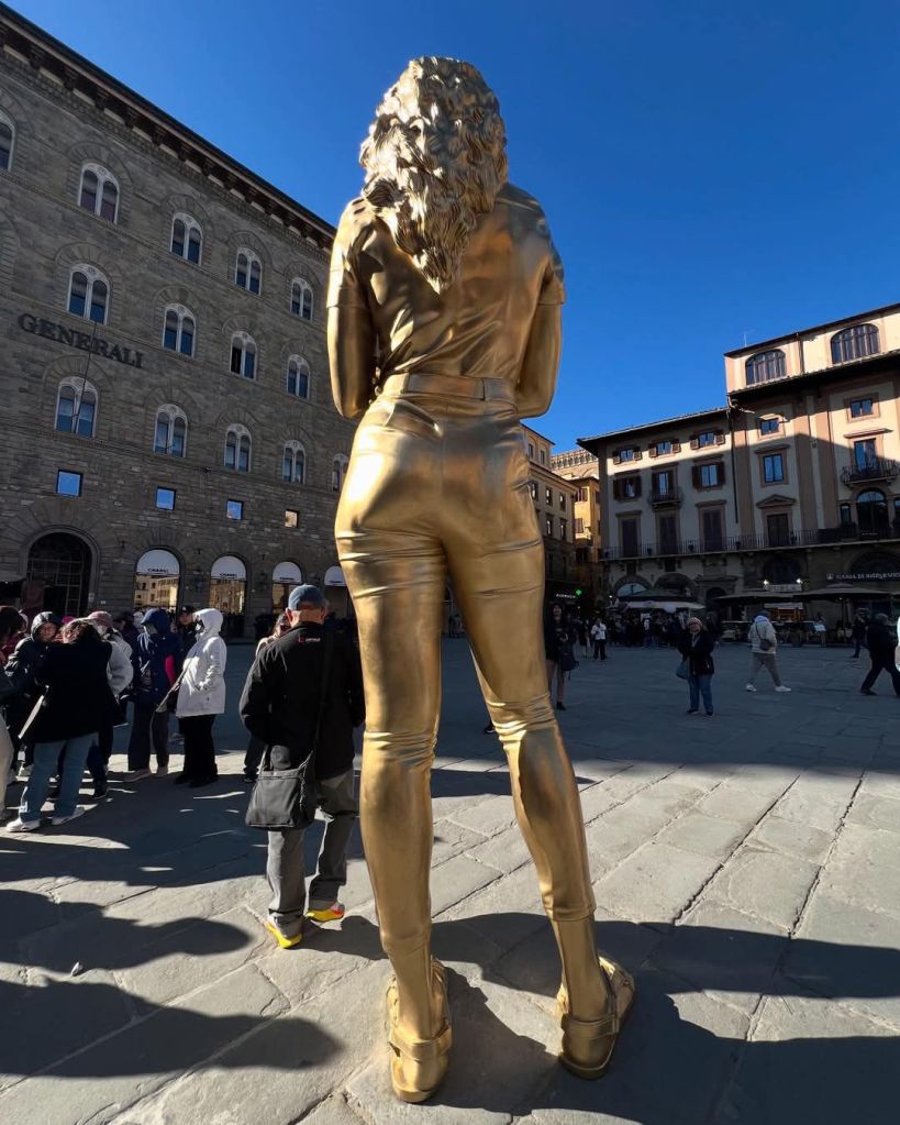«Ho sempre lavorato in direzione molto diverse, il Classicismo mi ha reso popolare ma in questa mostra è come se avessi aperto sette portali, sette sale dove il file rouge resta quello della bomboletta spray. Quando è uscita l’opportunità di usare l’AI l’ho colta al volo e ho iniziato a studiarla. Ho capito che non ne dovevo averne paura, ma usarla come uno strumento. Ho capito fino da subito che non mi avrebbe sostituito: ciò che è fatto a mano, il rapporto umano e il guardarsi negli occhi, come accade qui oggi, non verrà mai sostituito dalle macchine».