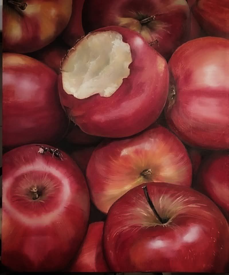L’ultima sala è dedicata agli autoritratti. Il primo, datato 2004, realizzato ad olio su un lenzuolo di casa, e poi i successivi datati 2013 e infine al 2024.